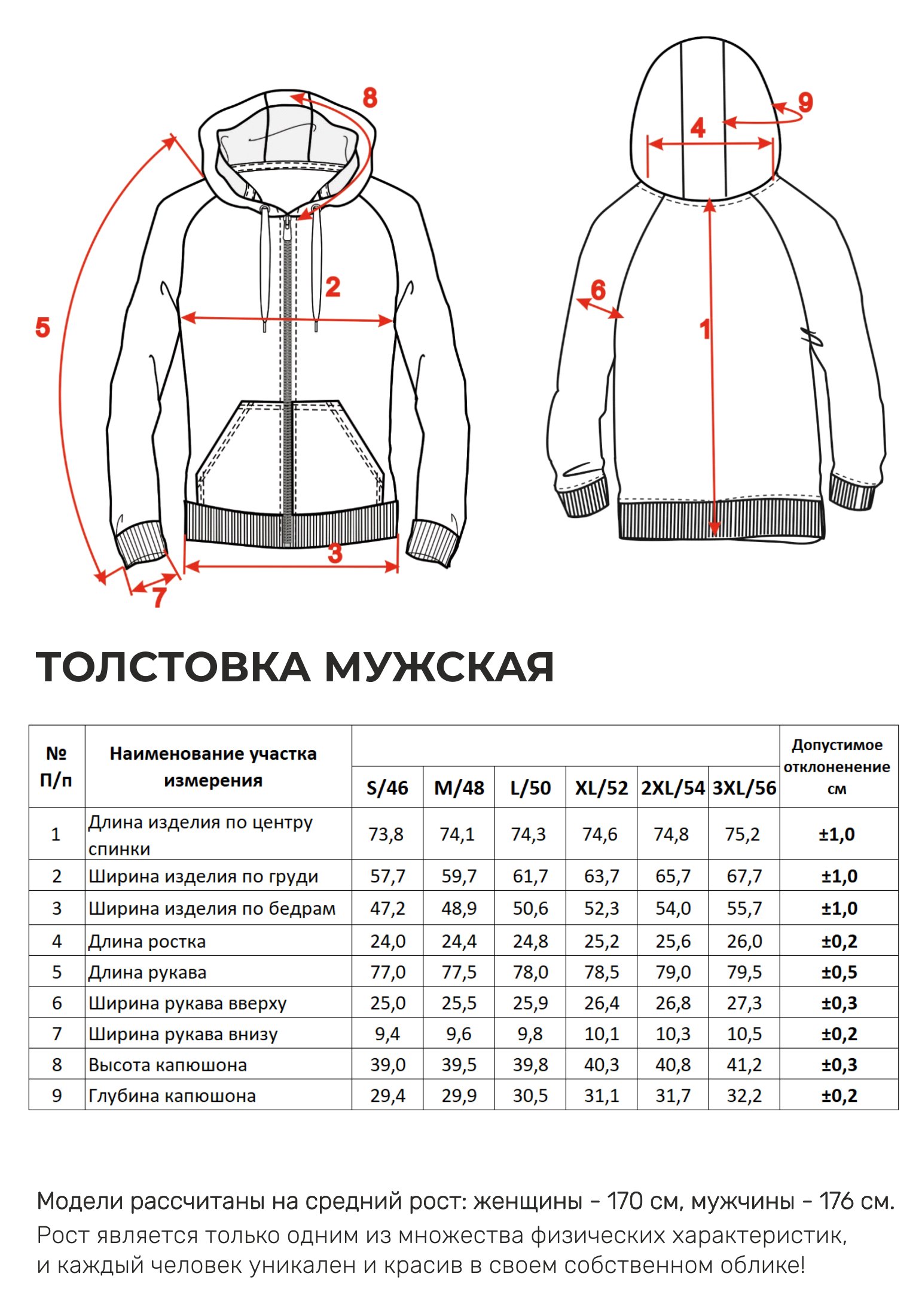 Параметры модели на фото -размер