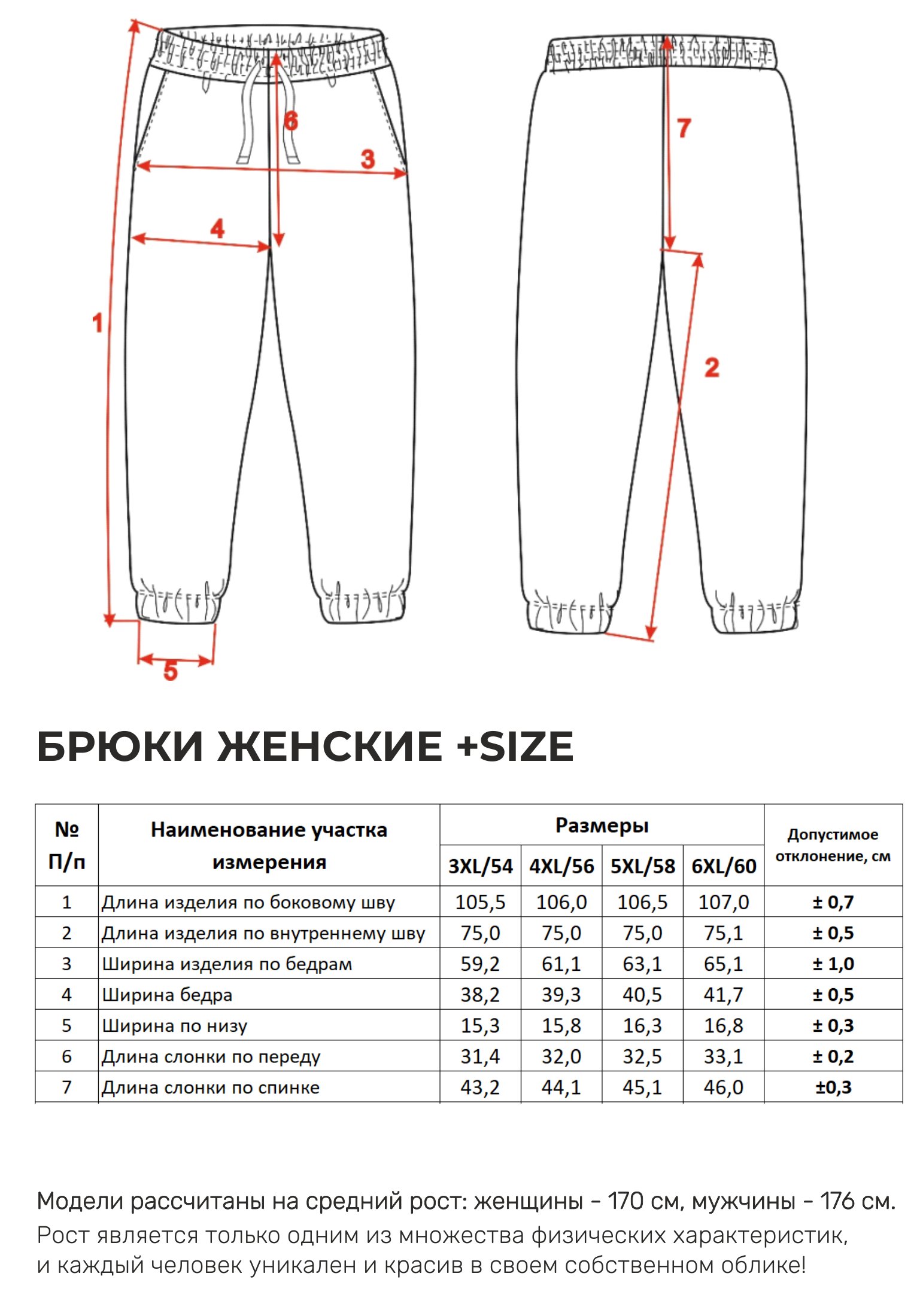 Параметры модели на фото -размер