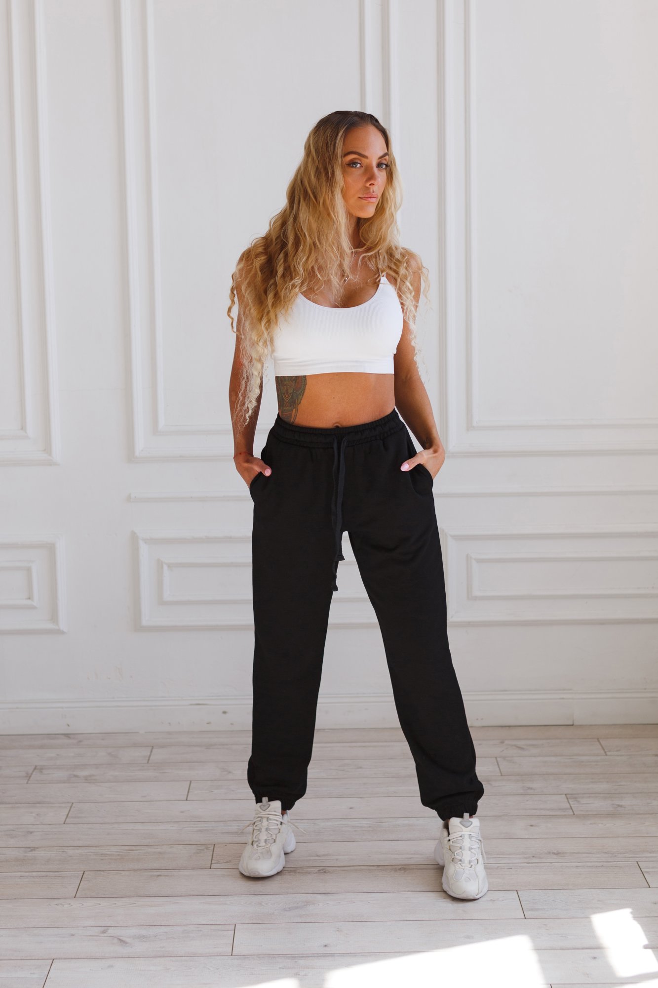 Женские спортивные брюки (джоггеры) из высококачественного турецкого футера 3-ех нитки без начеса. На поясе брюк удобная и широкая резинка под шнуровку, что позволяет дополнительно регулировать изделие по объему, два вместительных боковых кармана. Отличный вариант для прогулок, занятий спортом и повседневной носки. Гладить с изнанки. Стирка при t не более 30С. Деликатный отжим, отбеливание запрещено.