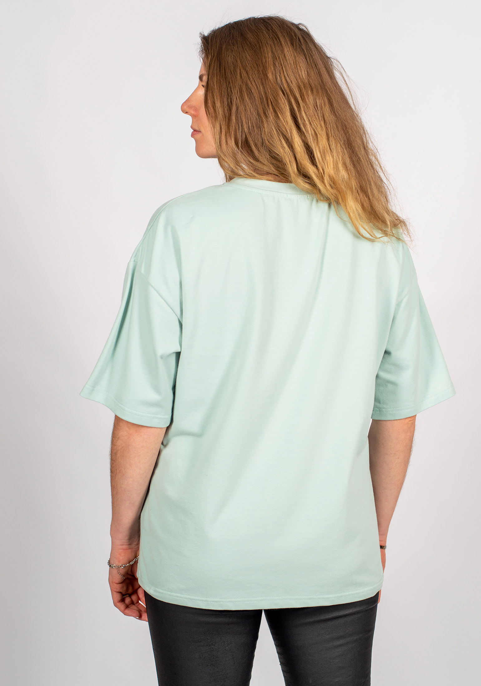 Стильная базовая женская футболка из премиального турецкого трикотажного полотна в стиле OVERSIZE с peach эффектом. Модель прямого, свободного кроя, с круглым вырезом ворота и спущенной линией плеча. Женская футболка - это базовая вещь в гардеробе любой современной девушки и женщины, является одной из самых удобных, популярных и незаменимых моделей одежды круглый год, сделает образ изысканным и современным. Наши невероятно удобные футболки отлично сочетаются с шортами, джинсами, юбками, джоггерами, кюлотами. Свободный крой и элегантная форма рукавов не только придают изделию стильный и модный вид, но и гарантируют его обладательнице комфорт даже в самые жаркие дни. Футболка - самый универсальный предмет женского гардероба, который подходит под любой образ, от строгой классики до спортивного стиля. Гладить с изнанки. Стирка при t не более30С. Деликатный отжим, отбеливание запрещено