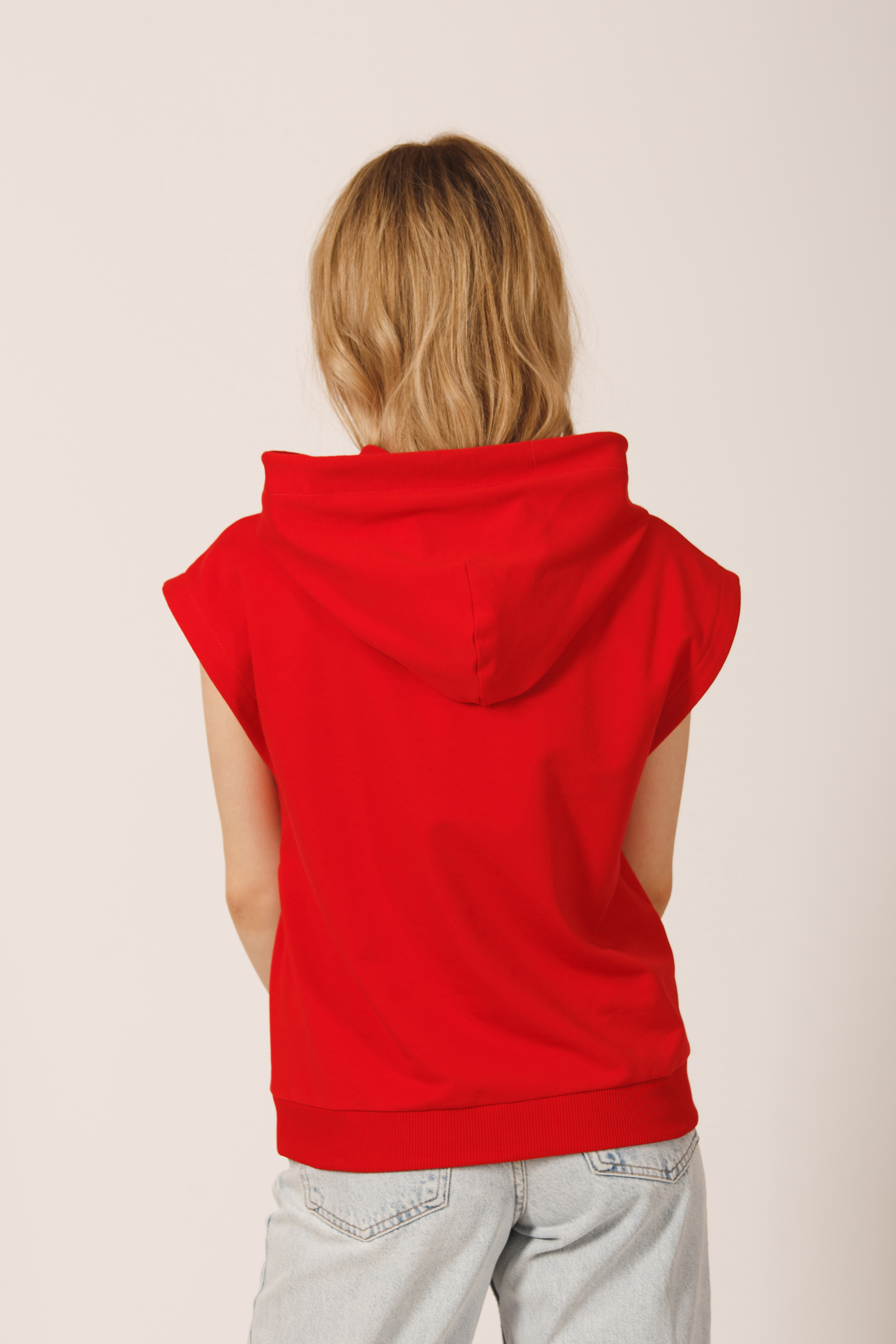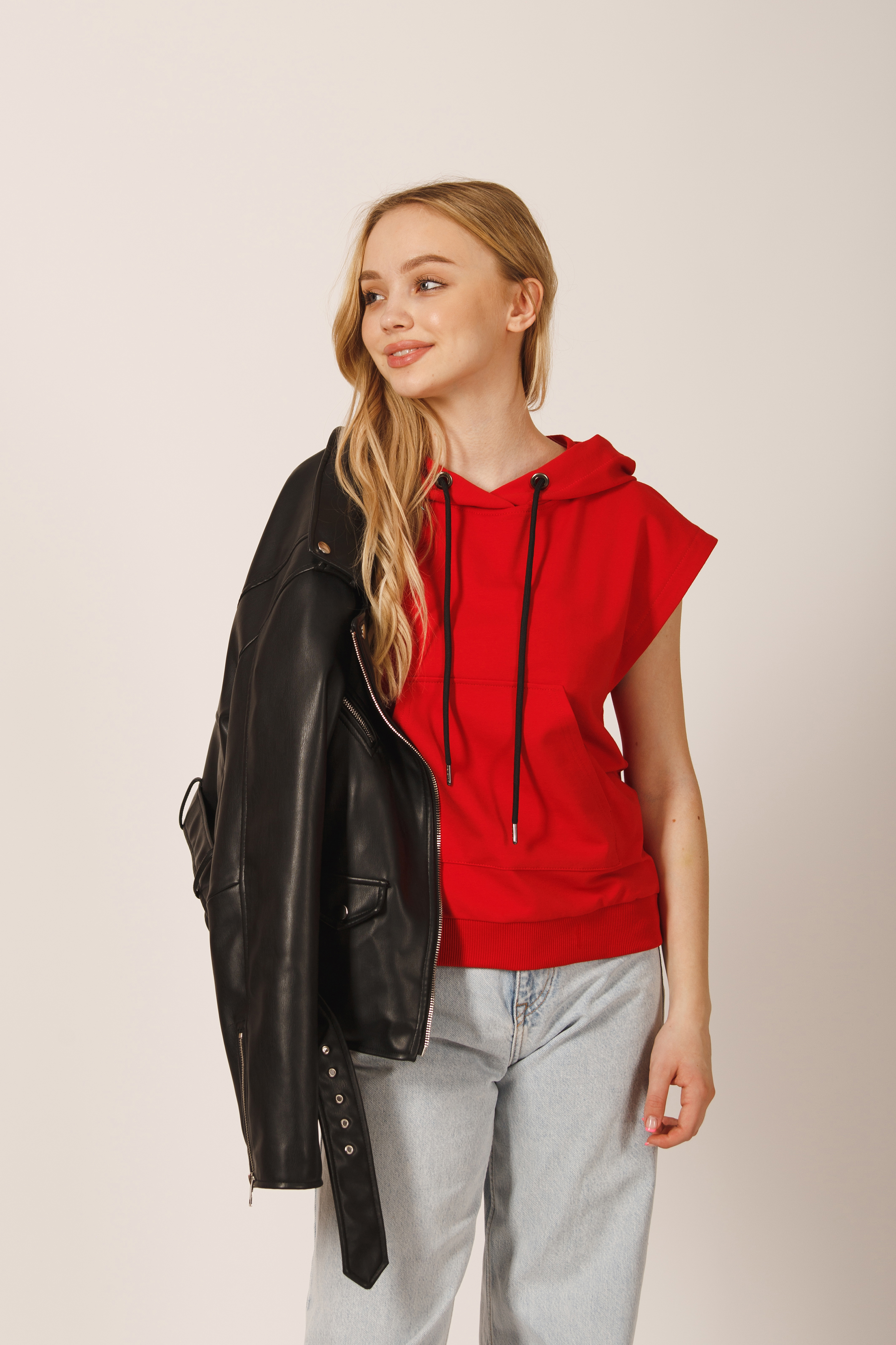 Стильный топ–худи без рукавов, выполнен из премиального турецкого футера 2-ух нитки. Наша трендовая модель, которая точно должна быть в гардеробе каждой девушки. Худи с несъёмным капюшоном, объём которого регулируется шнуром. На полочке изделия вместительный карман кенгуру. Проймы худи декорированы ластовицей из рибаны (кашкорсе). Отличный вариант на каждый день, в офис, на прогулку, на отдых. Гладить с изнанки. Стирка при t не более 30С. Деликатный отжим, отбеливание запрещено.