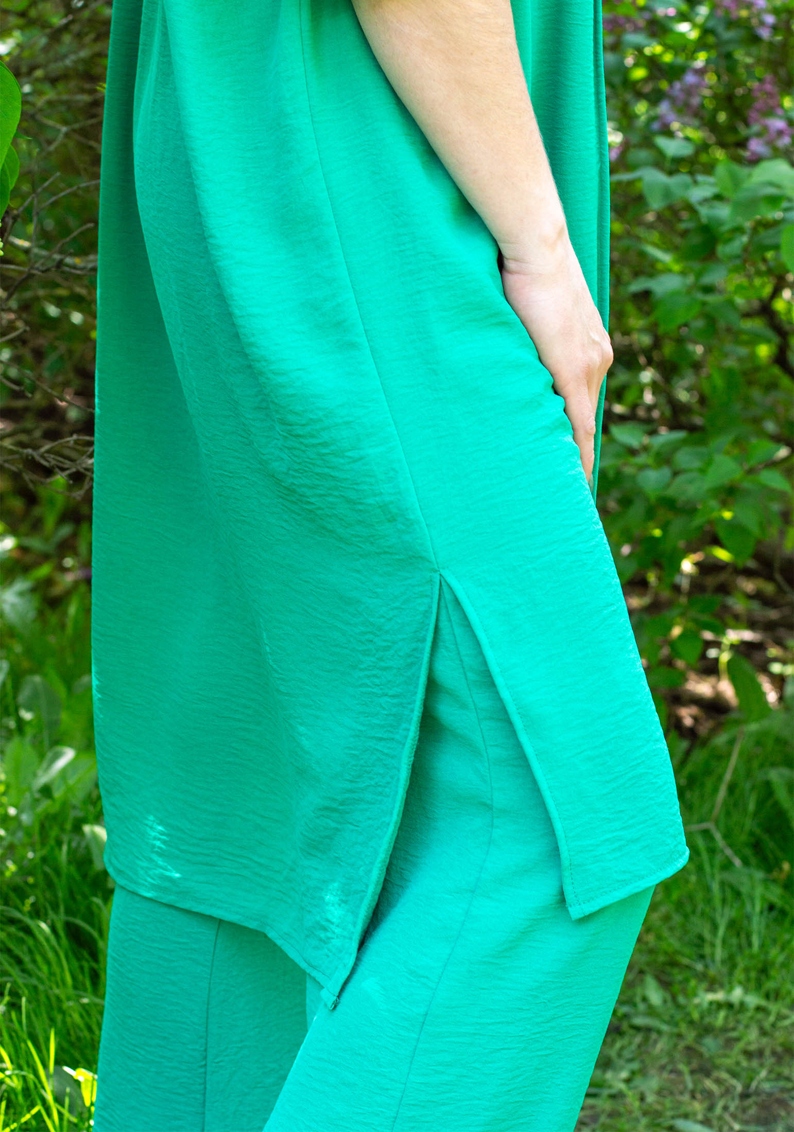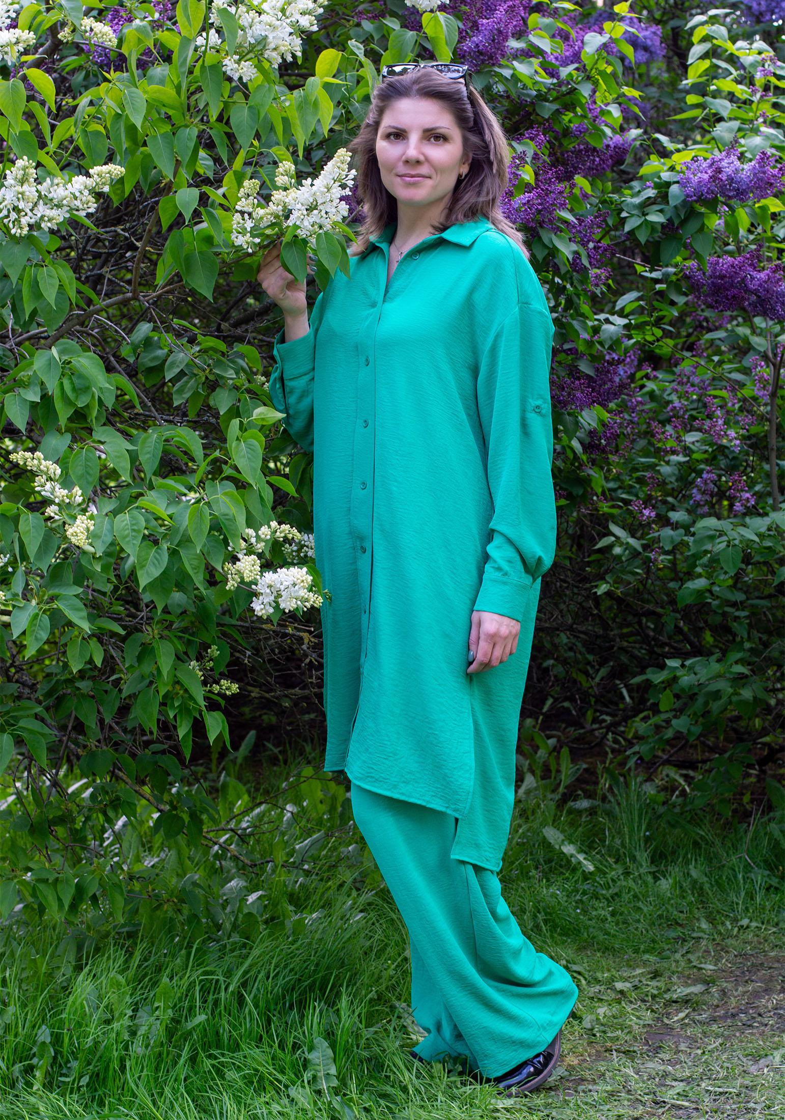 Летний женский костюм - идеальный выбор для стильных и модных девушек и женщин. Наш костюм состоит из брюк палаццо свободного силуэта и удлинённой рубашки с поясом. Комплект обладает оригинальным дизайном, изделия выполнены из текстильного жатого полотна дорна. Костюм ОВЕРСАЙЗ из легкой струящейся ткани - отличный вариант для повседневной носки, особенно в летнюю жаркую погоду. На поясе брюк удобная и широкая резинка, два вместительных функциональных боковых кармана. Легкие и свободные брюки палаццо универсальны, их можно носить на пляже, дома и на отдыхе, с рубашкой и с любым другим верхом: топом, майкой, футболкой, блузкой, кофтой. Рубашка оверсайз с пуговицами и прямые брюки на резинке создадут идеальный комплект для любого торжества. Так же комплект можно носить по раздельности, создавая множество стильных образов. Рубашку можно носить отдельно и с любым низом и как платье с поясом. Универсальный рукав длинный, но его легко трансформировать в рукав 3/4, благодаря удобной застежке. Рубашку можно носить как платье летнее или домашнее, так и как легкую накидку в прохладные вечера. Наша одежда свободного кроя - идеальное решение на каждый день. Такой крой даёт ощущение комфорта, свободы и раскованности - настоящая находка на жаркое лето! Отличный и незаменимый вариант повседневного гардероба, обеспечивающий свободу движений. Легкость, удобство, отличная воздухопроницаемость - все это делает нашу модель идеальным выбором! Удобный крой нашего костюма подойдет как для женщин и девушек с идеальными параметрами, так и для представительниц больших форм. Костюм прекрасно подойдет для дома, для отдыха на пляже, на море. Он будет идеален как пляжный вариант, благодаря легкой быстросохнущей ткани. Наша актуальная нарядная модель будет прекрасным подарком на новый год, к 8 марта, день святого Валентина, на день рождение, на день матери. Сделано в России с любовью к Вам! Гладить с изнанки. Стирка при t не более 30С, ткань после стирки дает небольшую усадку! Деликатный отжим, отбеливание запрещено. При соблюдении наших несложных правил ухода одежда DS будет радовать Вас долгое время!
