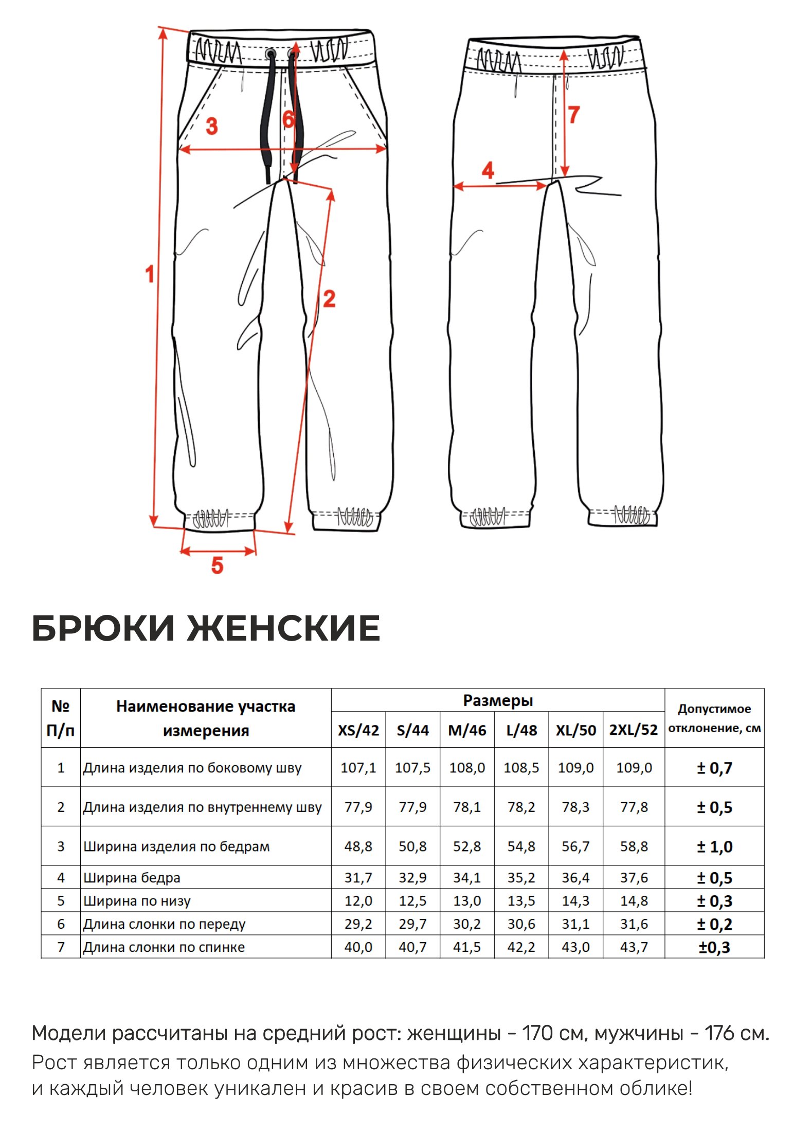 Параметры модели на фото -размер