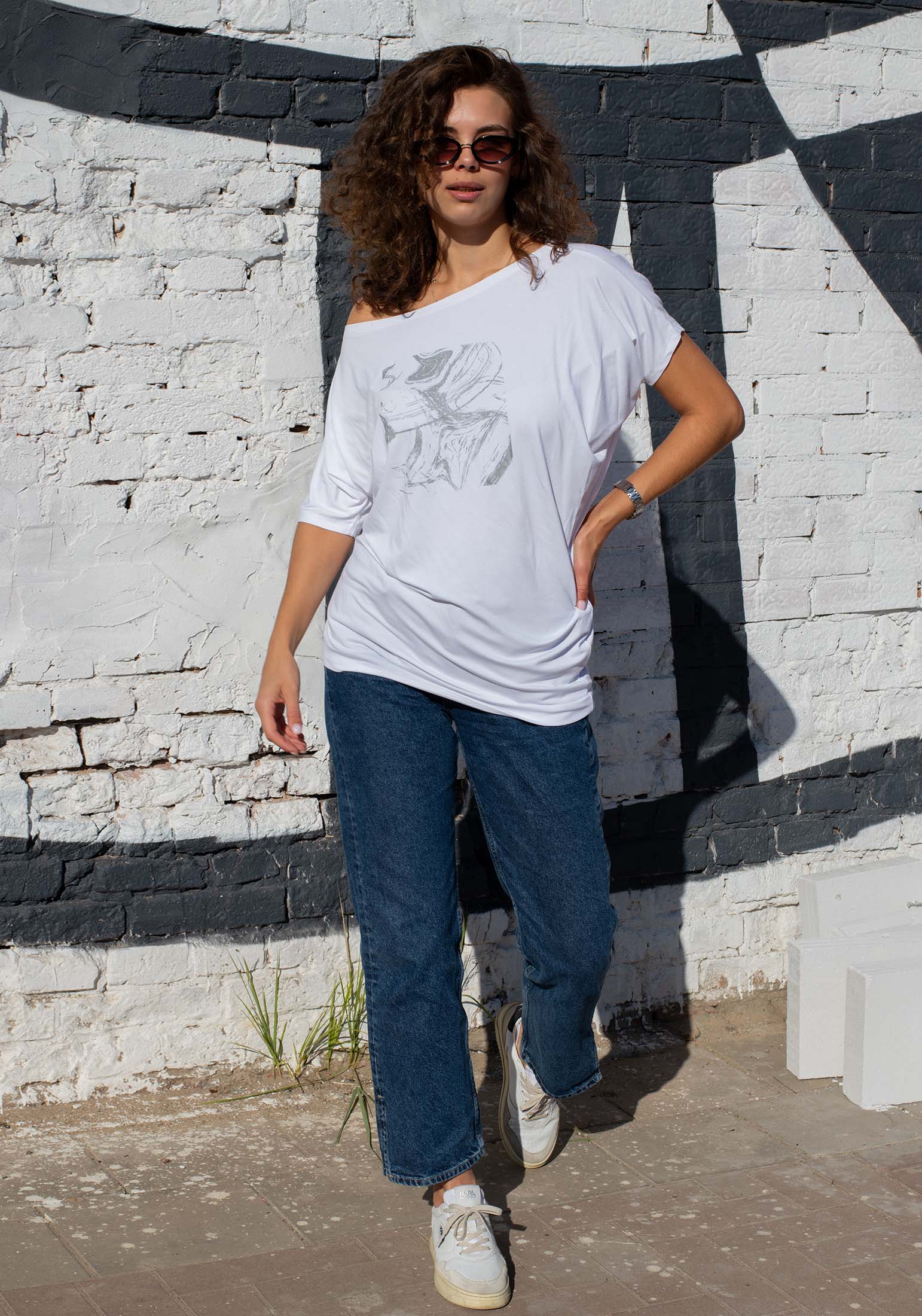 Уникальный женский лонгслив свободного кроя с укороченным рукавом, в стиле "Летучая мышь" с возможностью открыть одно плечо, выполнен из премиального турецкого полотна. На полочке изделия оригинальный фольгированный принт. Оригинальный дизайн обязательно привлечет к себе внимание. Качественный состав ткани обеспечивает комфорт при носке и гарантирует высокую износостойкость. Наш нарядный лонгслив отлично сочетается как с классическим пиджаком, брюками, юбками, так и с джинсами, является составной частью стиля сasual. Эластичный трикотажный лонгслив создаст неповторимый образ, который позволит вам одинаково стильно выглядеть на работе, в офисе, дома, а с дополнительными аксессуарами будет шикарен на праздниках и торжествах. Элегантный лонгслив является одной из самых удобных, популярных и незаменимых моделей одежды круглый год, сделает образ изысканным. Лонгслив свободного кроя - идеальное решение на каждый день. Такая форма изделия даёт ощущение комфорта, свободы и раскованности. Наша универсальная модель станет лучшим подарком жене, дочке, подруге, любимой или маме. Гладить с изнанки. Стирка при t не более 30С. Деликатный отжим, отбеливание запрещено. При соблюдении наших несложных правил ухода одежда DS будет радовать Вас долгое время!