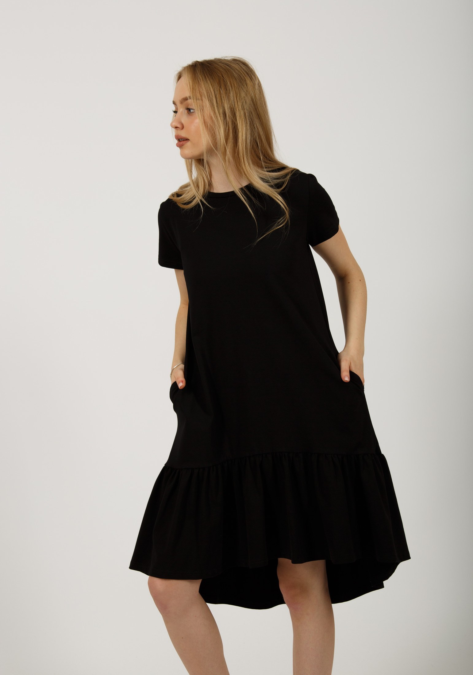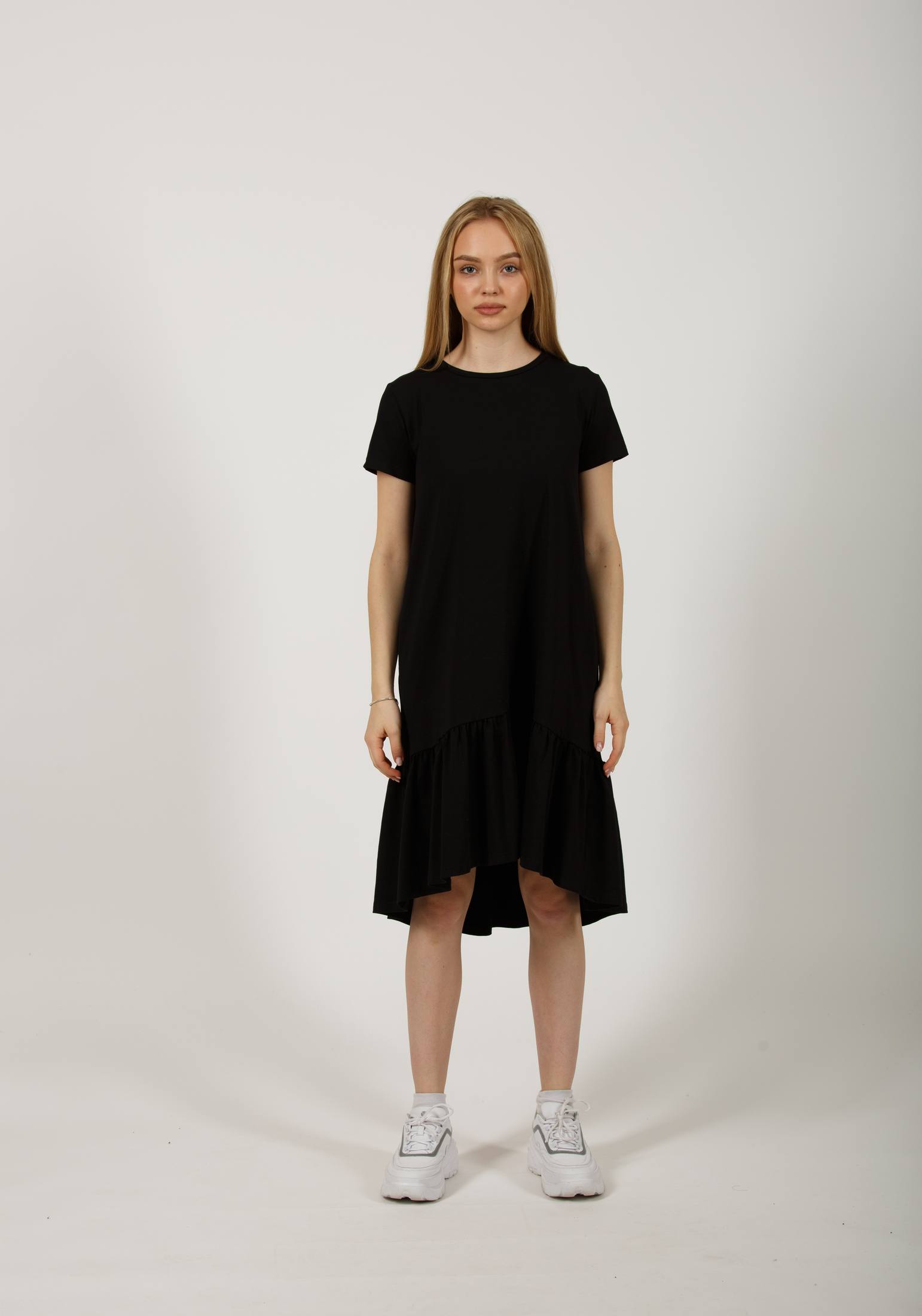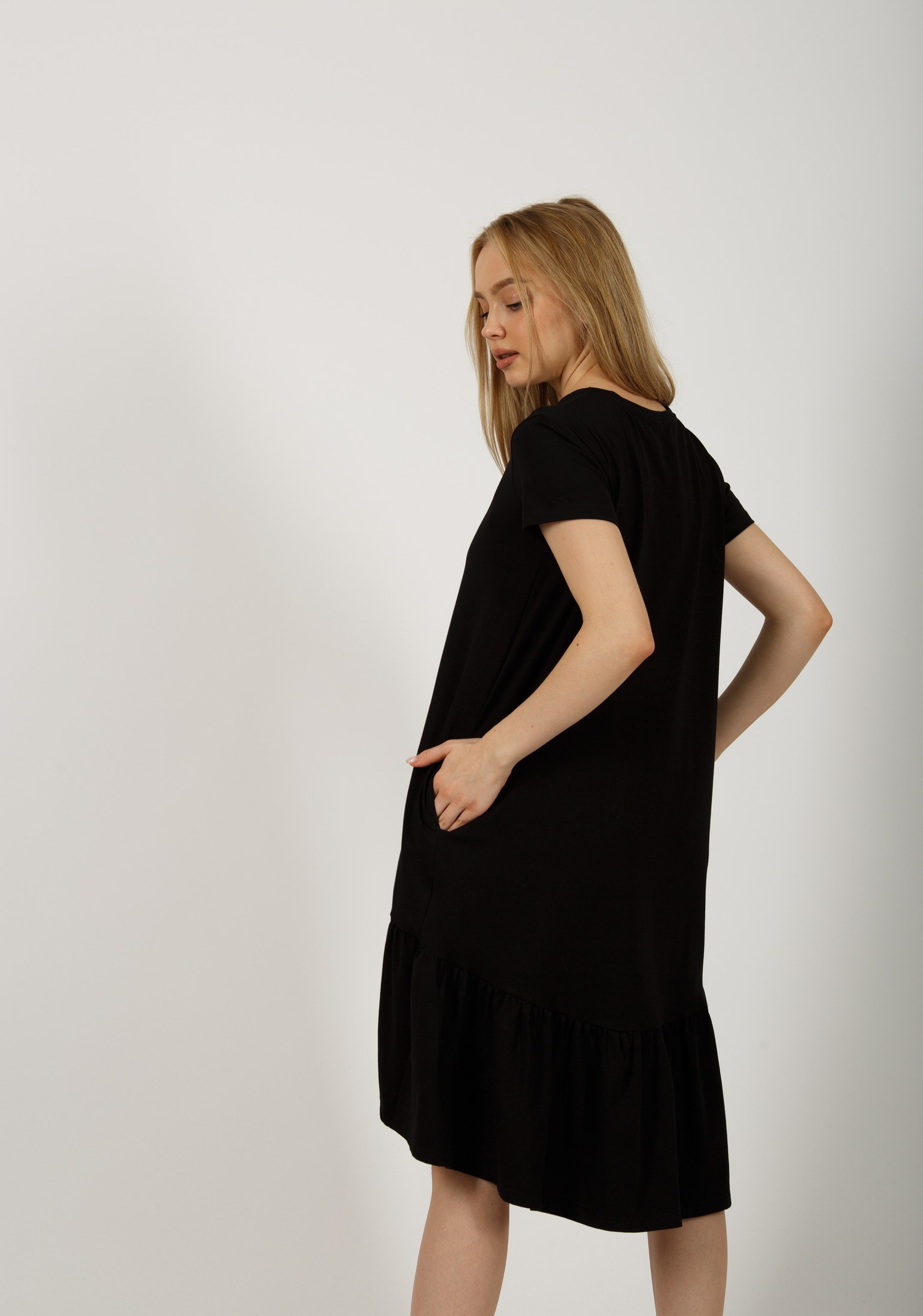 Стильное платье, свободного кроя, выполнено из премиального турецкого трикотажа. Это модель, которая должна быть в гардеробе каждой девушки. Платье с футболочнымвтачным рукавом, с женственной оборкой по низу изделия. Отличный вариант на каждый день, особенно в жаркий летний день: в офис, на прогулку, на отдых и даже дома. Идеально смотрится на любой фигуре, не сковывает движения и скрывает все недостатки. Гладить с изнанки. Стирка при t не более 30С. Деликатный отжим, отбеливание запрещено.